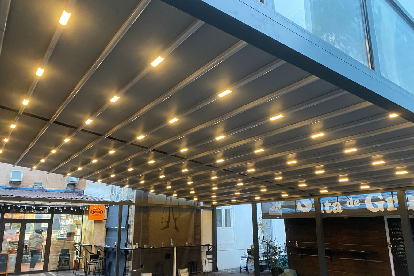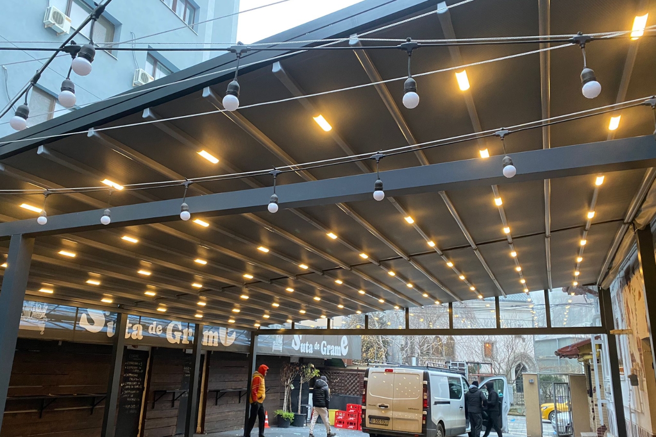 Pentru restaurantul Suta de grame din București, am realizat o pergolă retractabilă de 10×8.80 metri, proiectată să ofere flexibilitate și funcționalitate terasei.