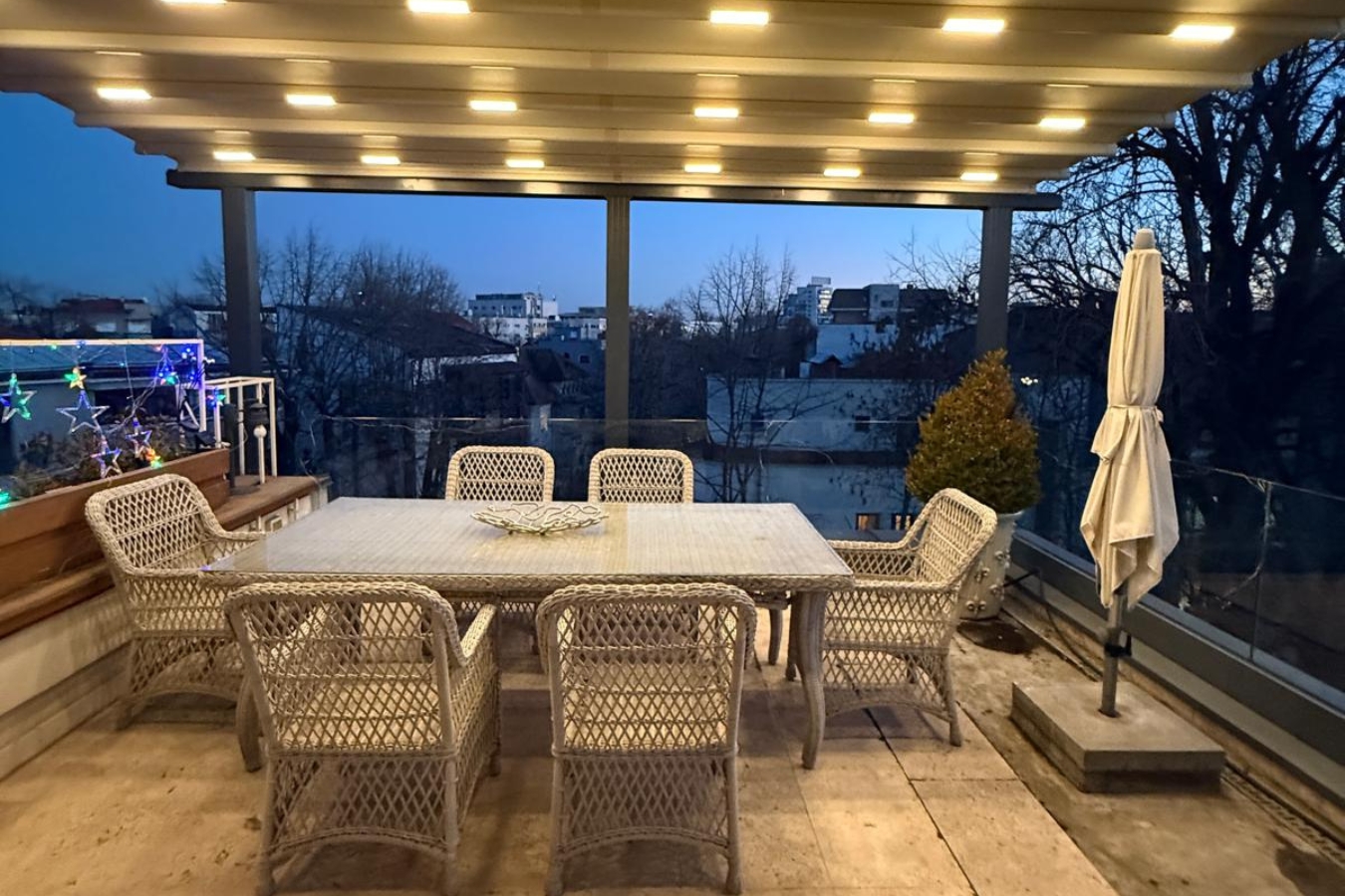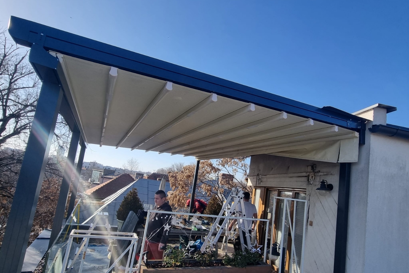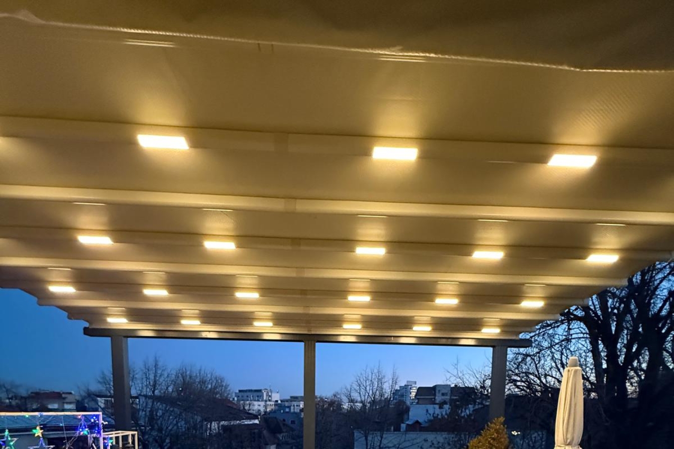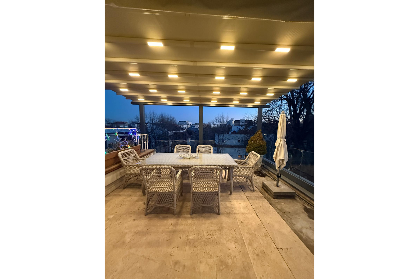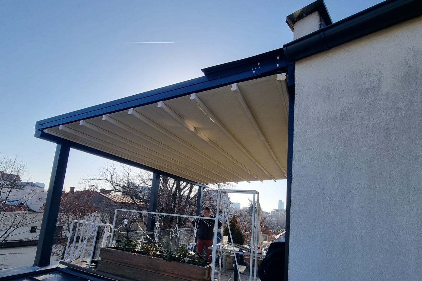 Pergola retractabilă, cu dimensiuni atipice de 5×4 metri, a fost proiectată pentru a se integra armonios în designul arhitectural al locației, oferind un spațiu optim pentru relaxare și utilizare practică.